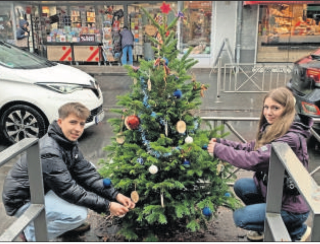 Auch in diesem Jahr beteiligte sich der Verein Partnerschaft des Friedens Rheinbach / Douaumont-Vaux e.V. gemeinsam mit den drei weiterführenden Schulen der Stadt an der Weihnachtsbaumschmückaktion in der Innenstadt von Rheinbach. Im November half Julian Gillner aus der 10e des Erzbischöflichen St. Joseph-Gymnasiums mit.