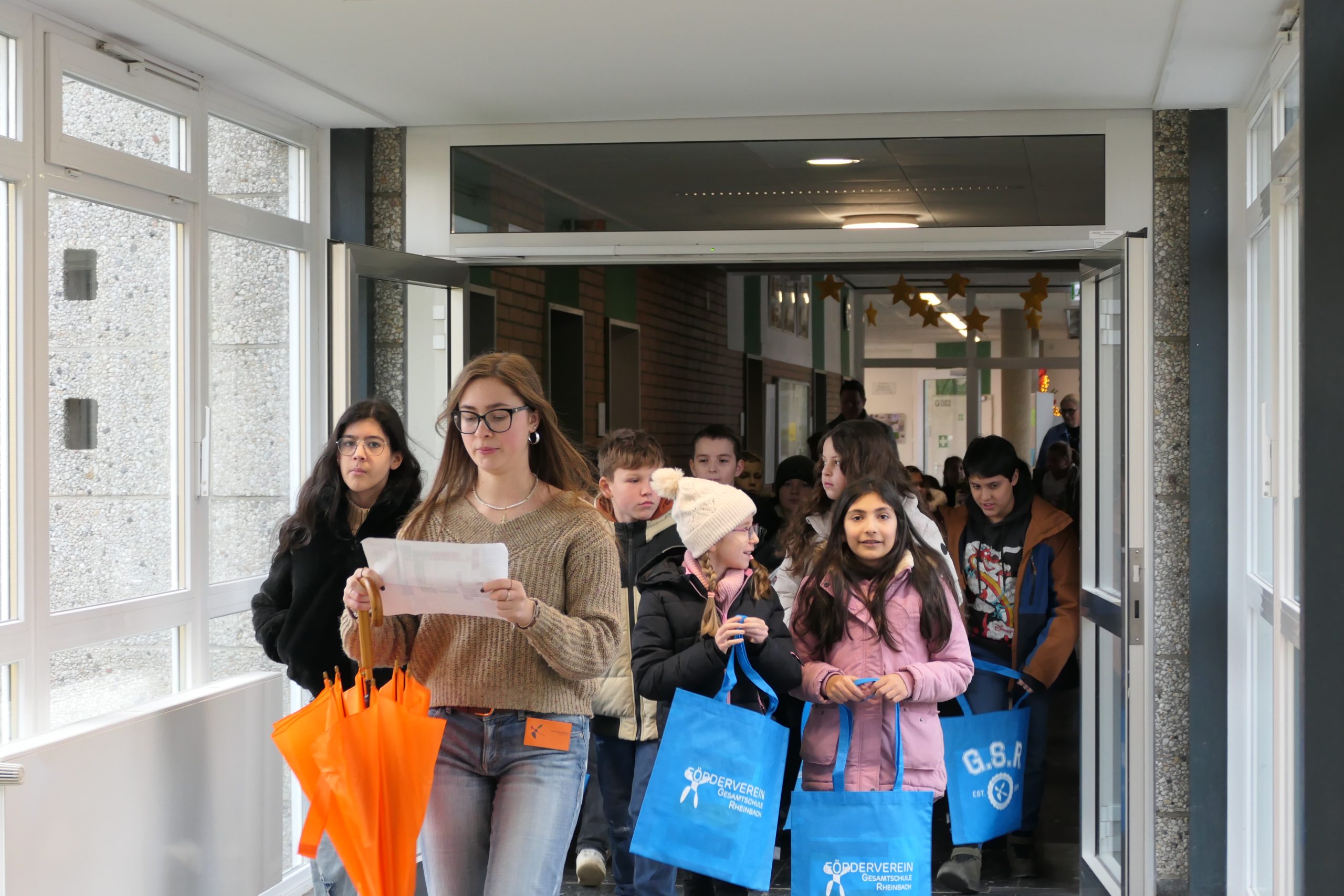 Die Veranstaltung begann um 10.00 Uhr mit einer musikalischen Begrüßung durch den 5er-Chor (Klassen 5.1 und 5.4), der von der Schulband begleitet wurde und die Gäste mit dem 5er-Song, unserer Schulhymne, begrüßte. Anschließend spielte die Band noch den Song „Save tonight“ und die „Wannabe-Girls“ aus der Klasse 7.1 verzauberten die Gäste mit einem tollen Tanz. Danach begrüßten die kommissarische Schulleiterin Frau Ullrich und der Abteilungsleiter Herr Michels offiziell die Besucher*innen und erklärten den organisatorischen Ablauf des „Tages der offenen Tür“. Anschließend kümmerten sich unsere Scouts (Schüler*innen des LK Pädagogik aus der Q1) um Eltern und Kinder und führten sie durch die Schule und über das Schulgelände.