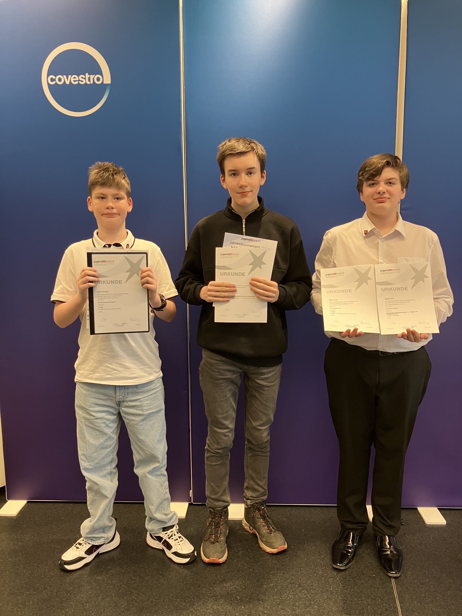 Bei der diesjährigen Veranstaltung von „Jugend forscht“, die in Leverkusen von der Firma Covestro ausgerichtet wurde, konnten die Schüler der Gesamtschule Rheinbach beachtliche Erfolge erzielen. Der Siebtklässler Moritz Holzäpfel forschte im Bereich Chemie und wurde für seine Arbeit mit dem zweiten Preis sowie einem Sonderpreis in Form eines Jahresabonnements der