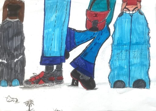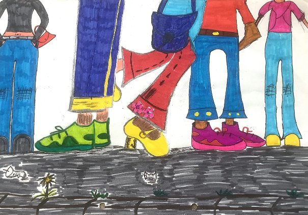 Januar 26: „Beine auf dem Bürgersteig“ mit Bunt – und Filzstiften aus der 7.1
